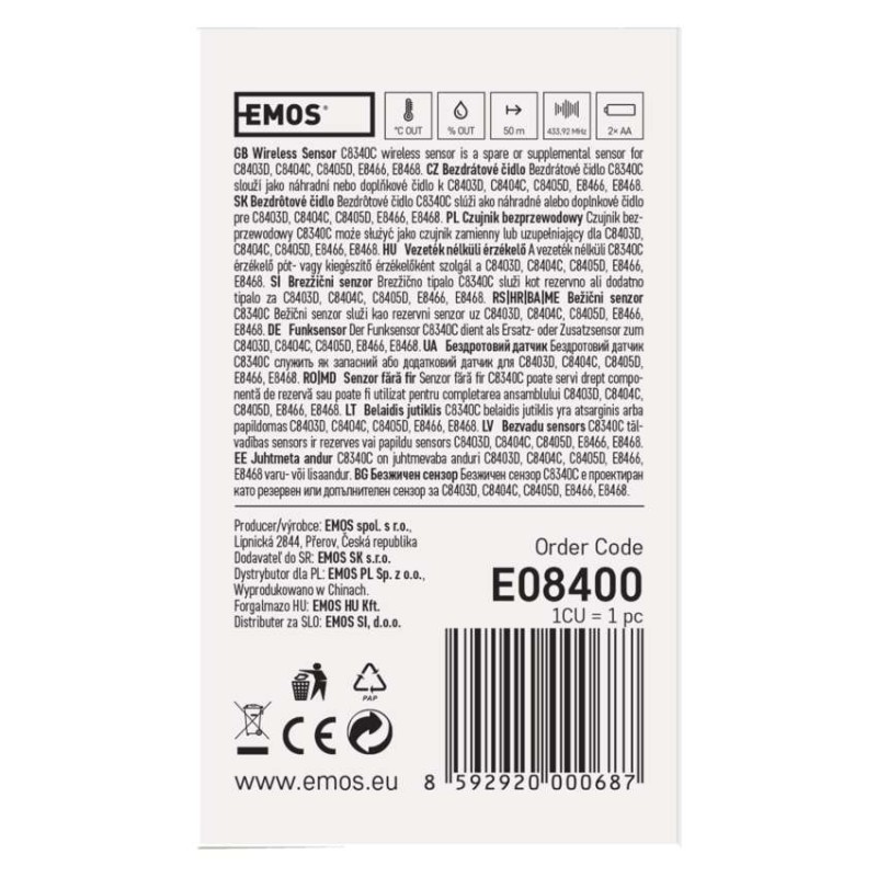 Náhradné čidlo pre typ hlavnej jednotky: C8403D, C8404C, C8405D, E8468, E8466.