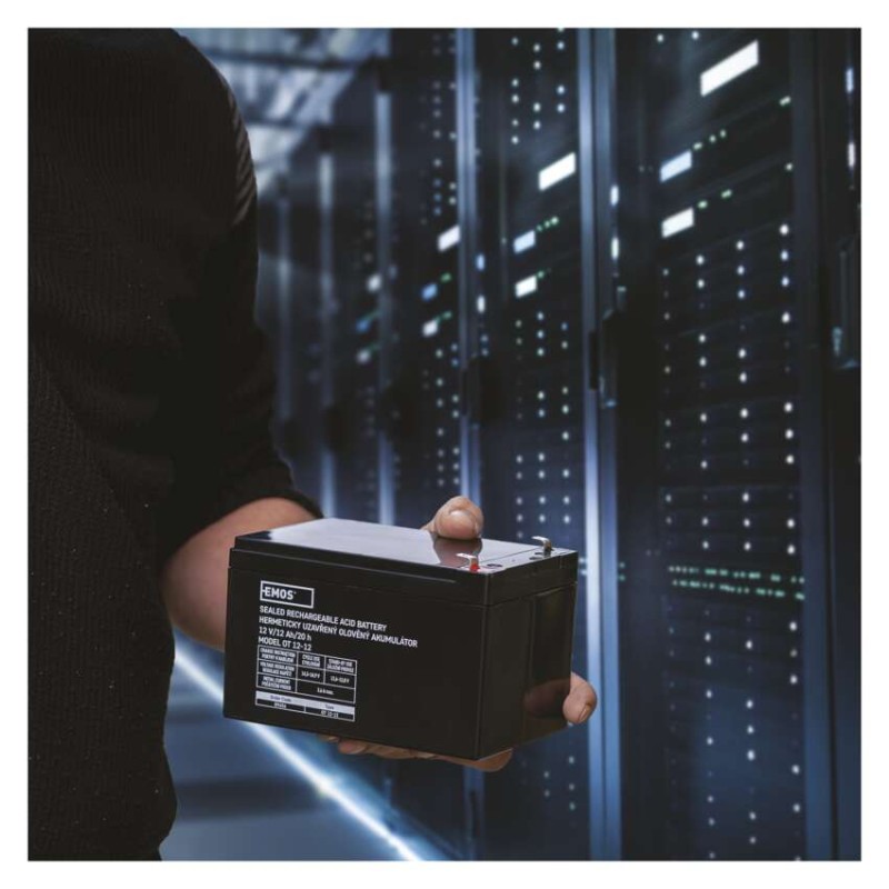Akumulátor EMOS je vhodný ako náhradná batéria pre záložné zdroje UPS, RBC kity, elektronické systémy EZS, EPS, záložné systémy výťahov a pod.Bezúdržbový, ventilom riadený olovený akumulátor v prevedení AGM umožňuje použitie v ľubovoľnej polohe. Optimálna životnosť v záložných systémoch je 5 rokov.