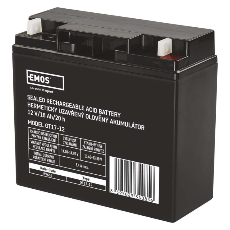 Akumulátor EMOS je vhodný ako náhradná batéria pre záložné zdroje UPS, RBC kity, elektronické systémy EZS, EPS, záložné systémy výťahov a pod.Bezúdržbový, ventilom riadený olovený akumulátor v prevedení AGM umožňuje použitie v ľubovoľnej polohe. Optimálna životnosť v záložných systémoch je 5 rokov.