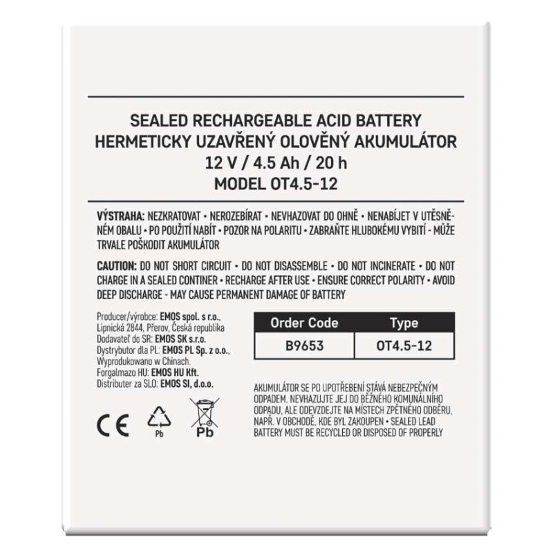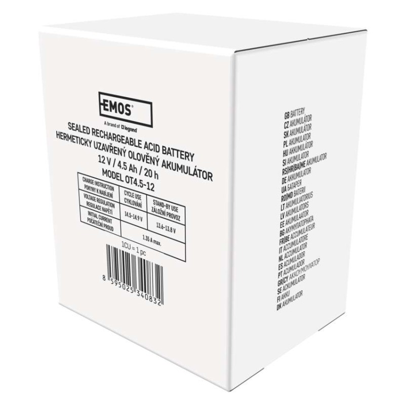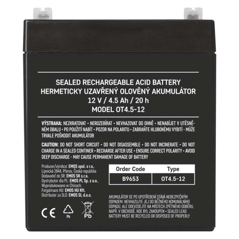 Akumulátor EMOS je vhodný ako náhradná batéria pre elektronické systémy - EZS, EPS, záložné systémy výťahov a pod.Bezúdržbový, ventilom riadený olovený akumulátor v prevedení AGM umožňuje použitie v ľubovoľnej polohe. Optimálna životnosť v záložných systémoch je 5 rokov.