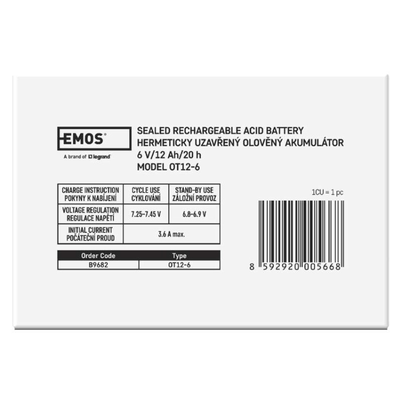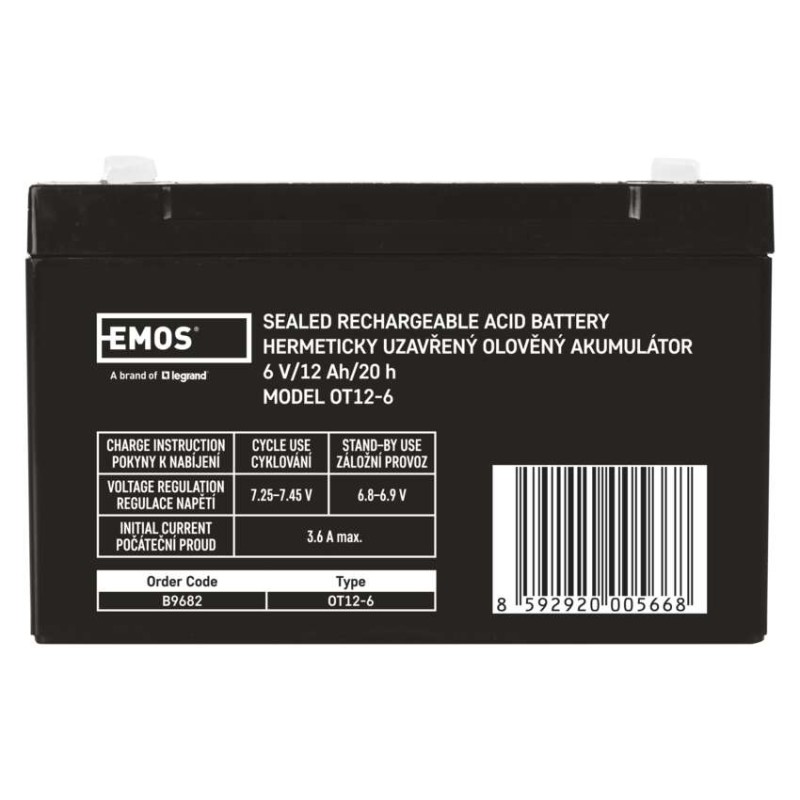 Akumulátor EMOS je vhodný ako náhradná batéria pre záložné zdroje UPS, RBC kity a pod. Bezúdržbový, ventilom riadený olovený akumulátor v prevedení AGM umožňuje použitie v ľubovoľnej polohe.Optimálna životnosť v záložných systémoch je 5 rokov.