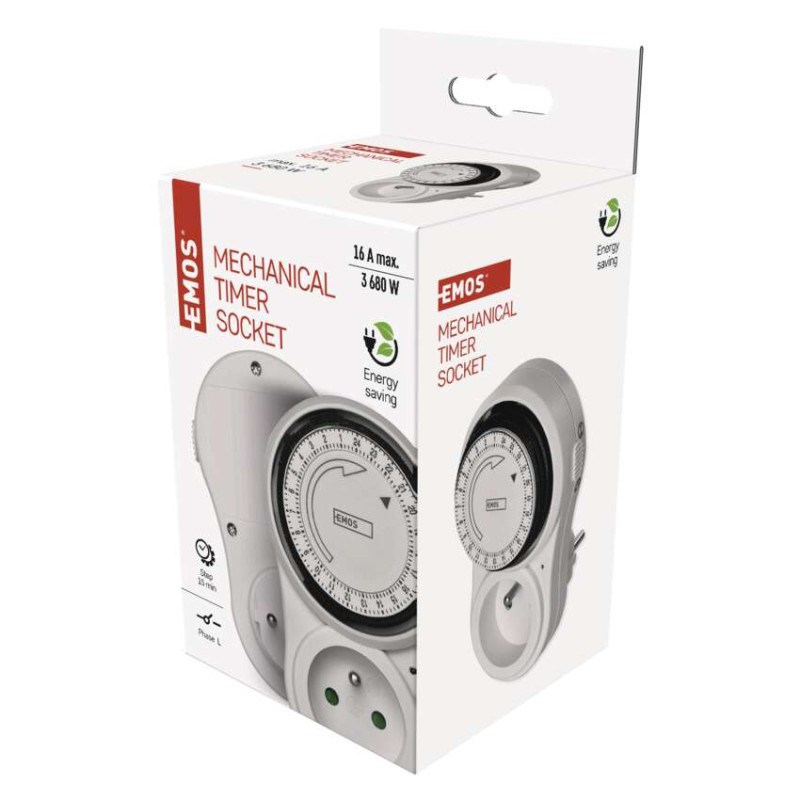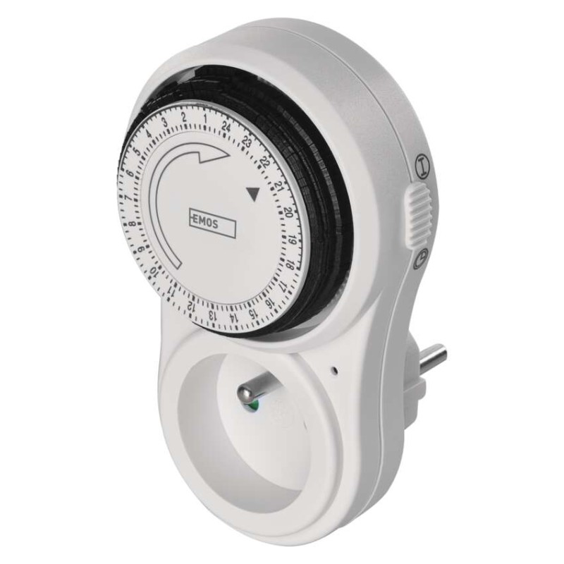 Táto mechanická spínacia zásuvka, alebo časovač, je ideálny pre nastavenie zapnutia a vypnutia akýchkoľvek elektrických spotrebičov. Je spoľahlivý aj vo Vašej neprítomnosti.