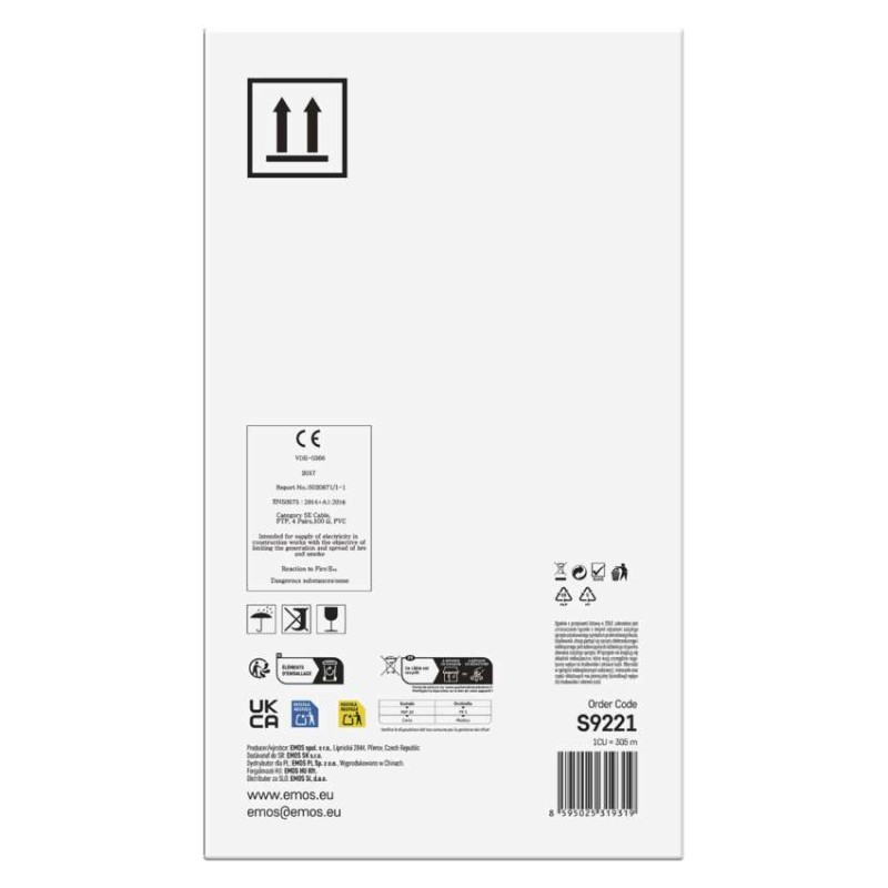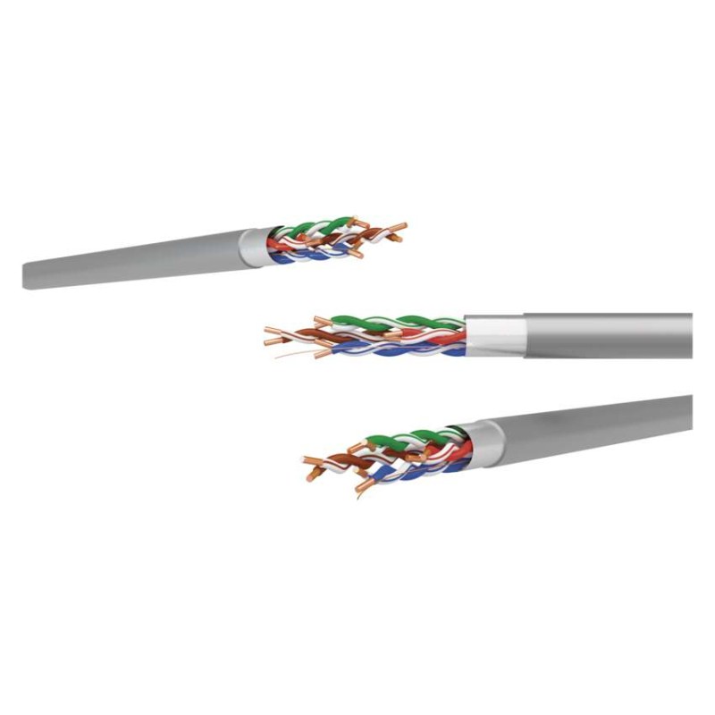 Tienený horizontálny kábel najvyššej kvality kategórie CAT5E s PVC plášťom. Jadrá vodičov vyrobené z nerecyklovanej medi. Kábel spĺňa požiadavky smernice CPR o stavebných výrobkoch.