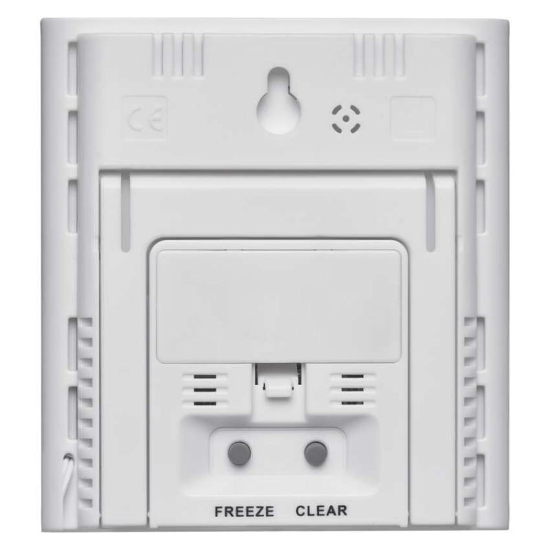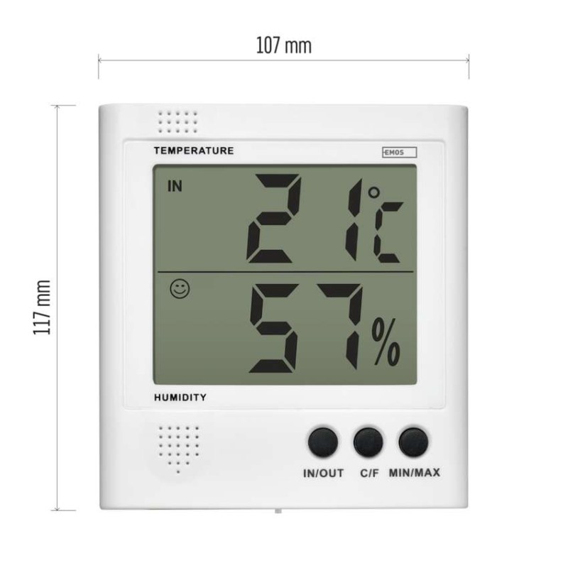 Digitálny teplomer s drôtovú sondou. Teplomer zaznamenáva vnútornú a vonkajšiu teplotu, vnútornú vlhkosť, min. a max. teplotu a varuje pred mrazom. Sonda teplomeru má dĺžku 2 m.