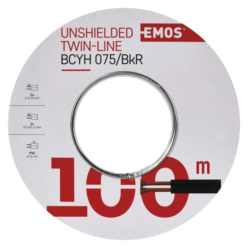 Netienená dvojlinka (vodič) s prierezom 2 × 0,75 mm2. Dvojlinka má čiernu farbu izolácie s jedným vodičom označeným červeným prúžkom. Plášť kábla je vyrobený z PVC.