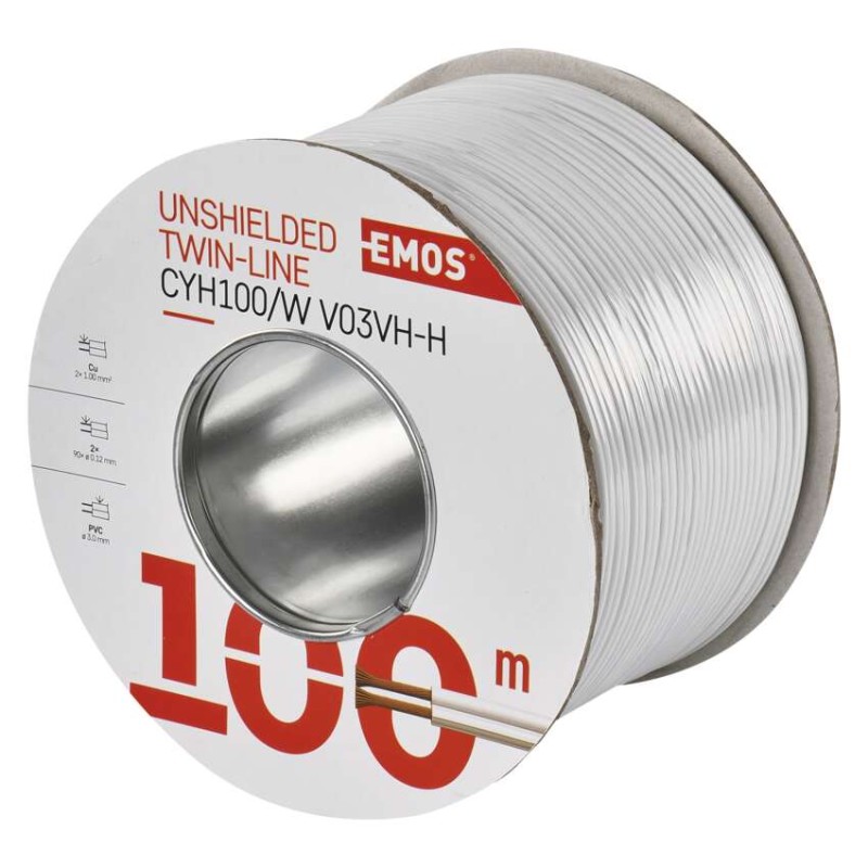 Netienená dvojlinka (vodič) s prierezom 2 x 1,00 mm2. Dvojlinka má bielu farbu a PVC plášť.