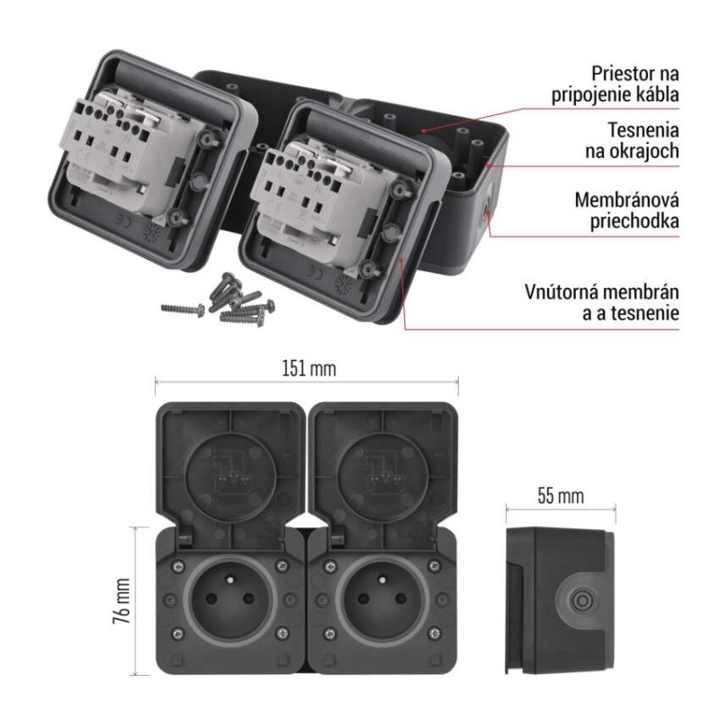 produkt | dvojitá zásuvka s ochrannými kolíkmi a detskou zástenou |
