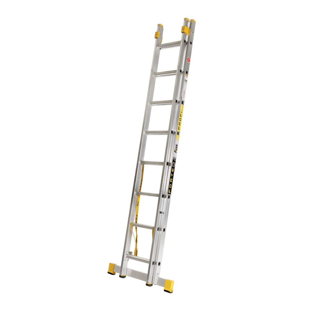 Hliníkový dvojdielny univerzálny rebrík FORTE, počet priečok 2 x 8, max. výsuvná dĺžka 3,83 m a šírka 420 mm. Rebrík možno použiť ako výsuvný rebrík alebo ako štafle. Možnosť použitia na profesionálne účely. Na produkt sa vzťahuje záruka 7 rokov.