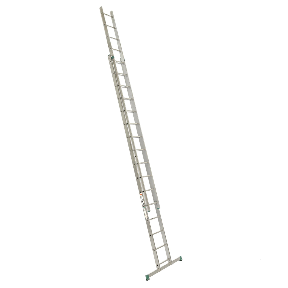 Hliníkový dvojdielny výsuvný rebrík EUROSTYL, počet priečok 2 x 16, max. výsuvná dĺžka 7,66 m a šírka 397 mm. Tento typ rebríka sa nedá zložiť do "A" ako štafle. *Rebrík NEMOŽNO rozobrať a použiť ako dva jednodielne rebríky. Možnosť použitia na profesionálne účely. Na produkt sa vzťahuje záruka 5 rokov.