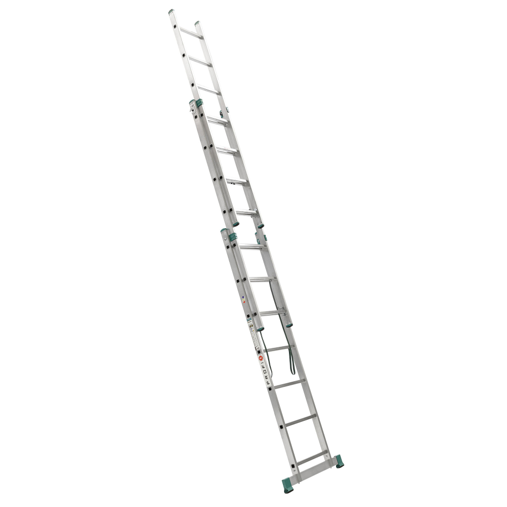 Hliníkový trojdielny univerzálny rebrík EUROSTYL, počet priečok 3 x 7, max. výsuvná dĺžka 3,99 m a šírka 454 mm. Možnosť použitia na profesionálne účely. Na produkt sa vzťahuje záruka 5 rokov.