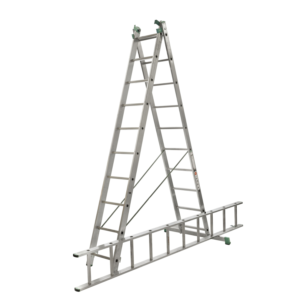 Trojdielny hliníkový univerzálny rebrík EUROSTYL, počet priečok 3 x 10, max. výsuvná dĺžka 6,26 m a šírka 454 mm. Možnosť použitia na profesionálne účely. Na produkt sa vzťahuje záruka 5 rokov.
