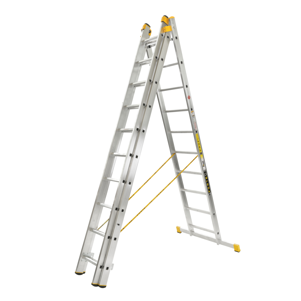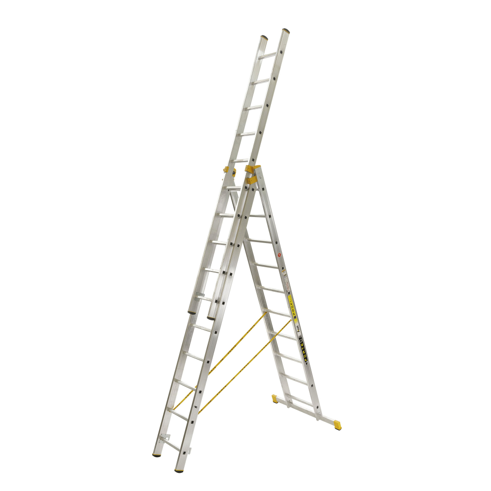 Trojdielny hliníkový univerzálny rebrík FORTE, počet priečok 3 x 10, max. výsuvná dĺžka 6,95 m a šírka 492 mm. Možnosť použitia na profesionálne účely. Na produkt sa vzťahuje záruka 7 rokov.