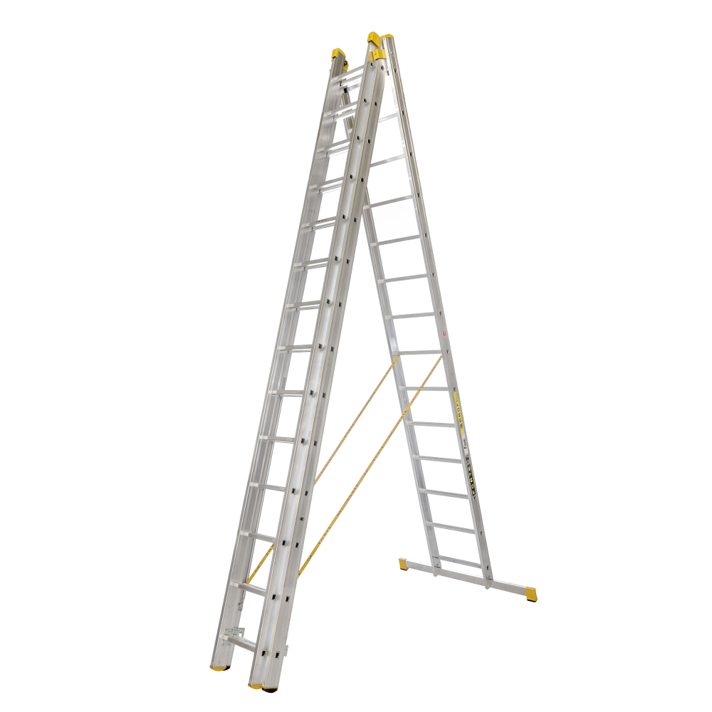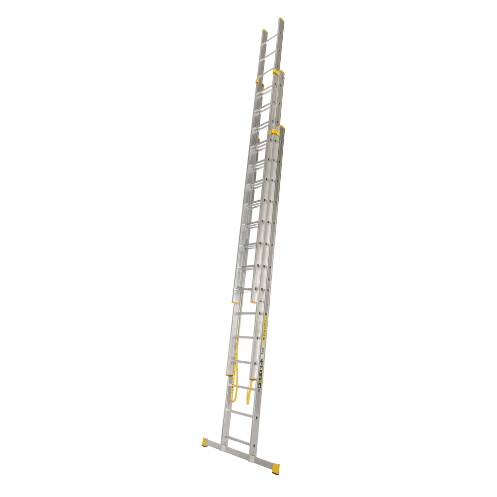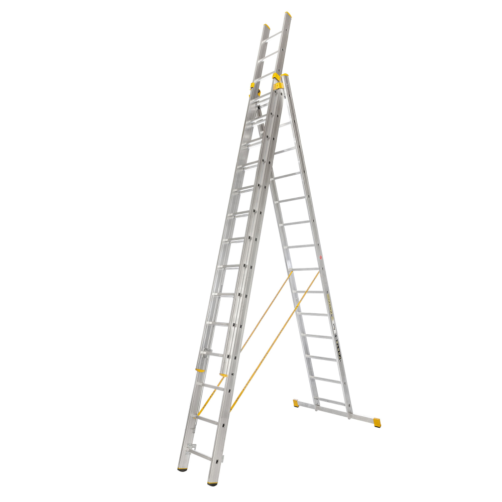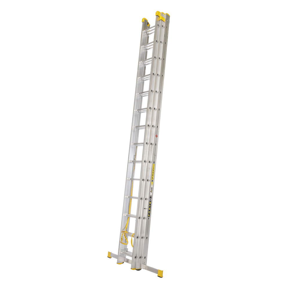 Trojdielny hliníkový univerzálny rebrík FORTE, počet priečok 3 x 14, max. výsuvná dĺžka 10,34 m a šírka 492 mm. *Tretiu výsuvnú časť NEMOŽNO oddeliť a používať ako samostatný diel. Možnosť použitia na profesionálne účely. Na produkt sa vzťahuje záruka 7 rokov.
