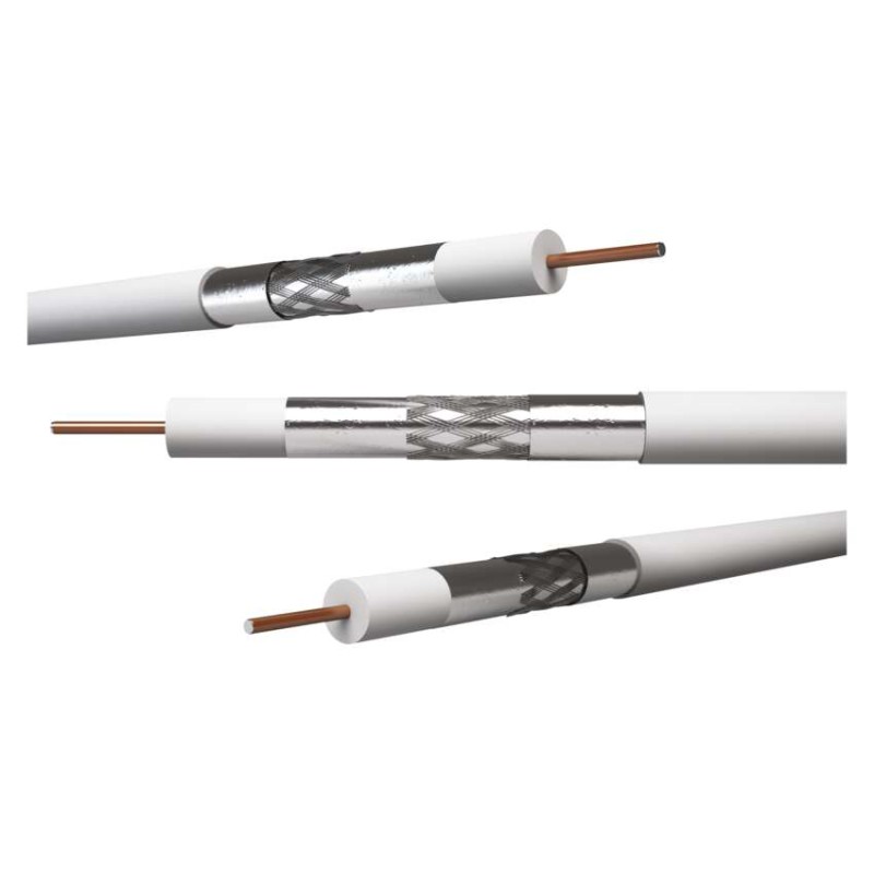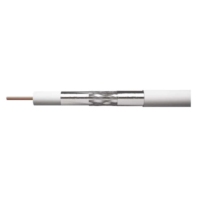 Univerzálny koaxiálny kábel typu RG6 so stredovým vodičom z CCS a dvojnásobným tienením z hliníkového drôtu Al, biela farba. Kábel je určený pre všetky aplikácie prenosov, TV a SAT signálov v nenáročnom prostredí. Vďaka použitému materiálu stredového vodiča a opleteniu je kábel mimoriadne odolný voči poveternostným podmienkam, vlhkosti a korózii.