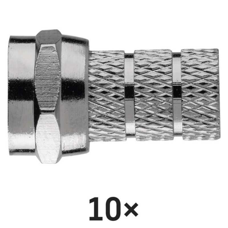 F-konektor vidlica určená na napojenie na koaxiálny kábel CB500. F-konektor má skrutkovaciu vidlicu.