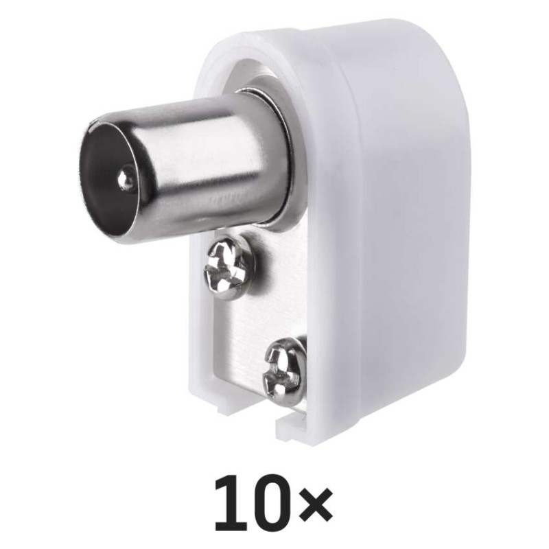 IEC konektor A205 uhlová vidlica je určená na napojenie na koaxiálny kábel a má bielu farbu. Predáva sa po 10 ks a je plastová.