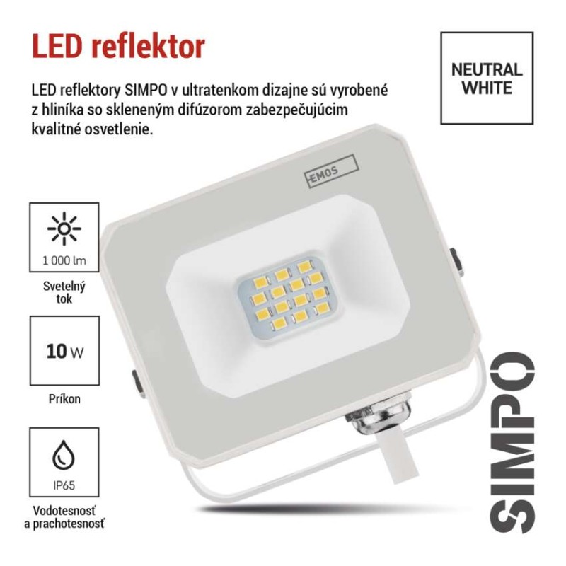 LED reflektor SIMPO 10 W neutrálna biela