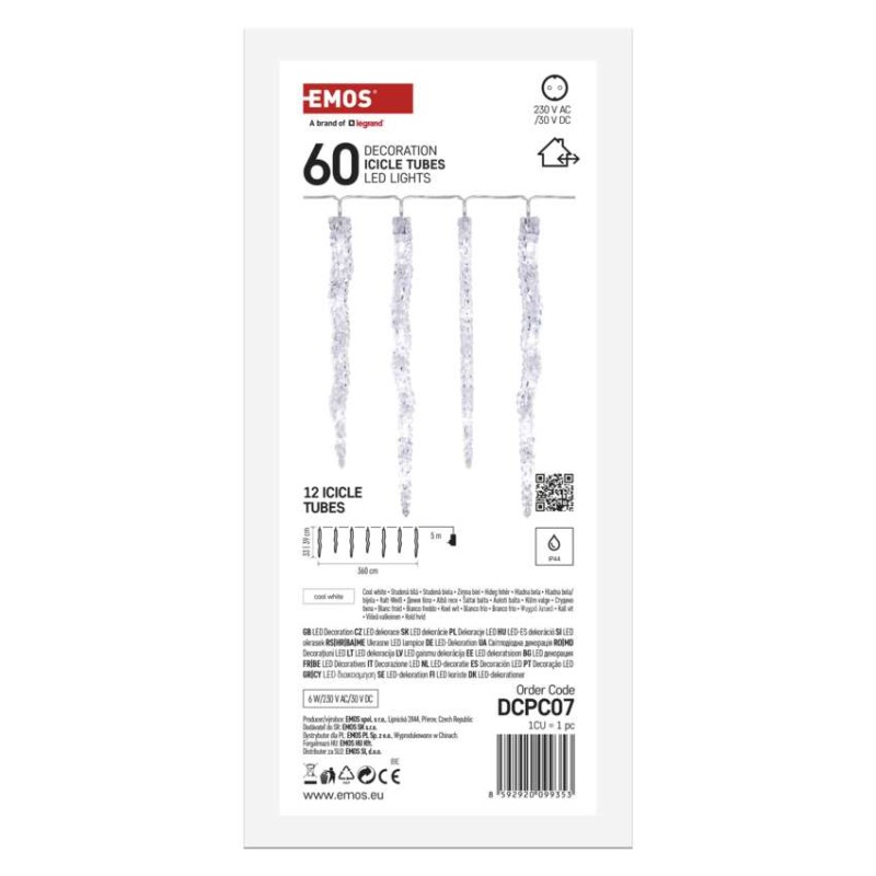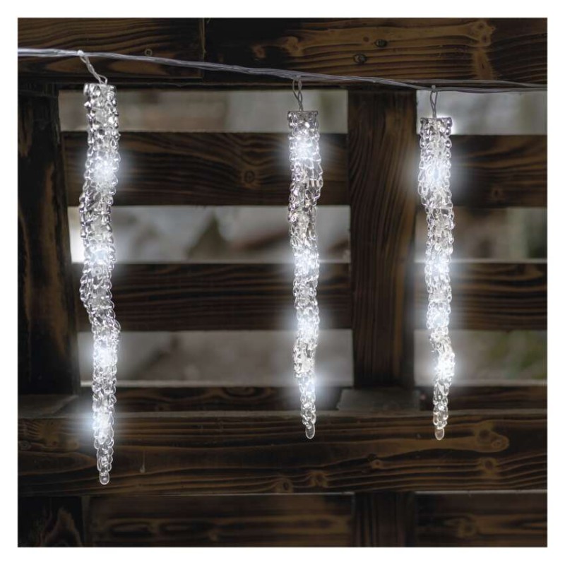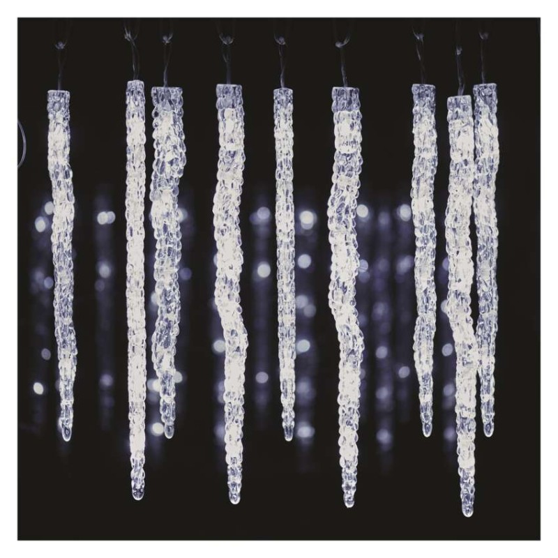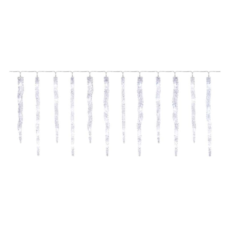LED vianočná girlanda – cencúle, 12 ks, 3,6 m, vonk. a vnút., studená biela