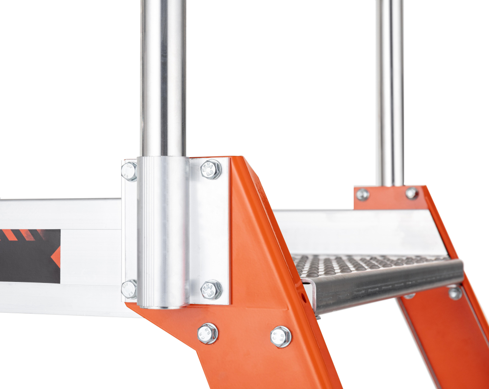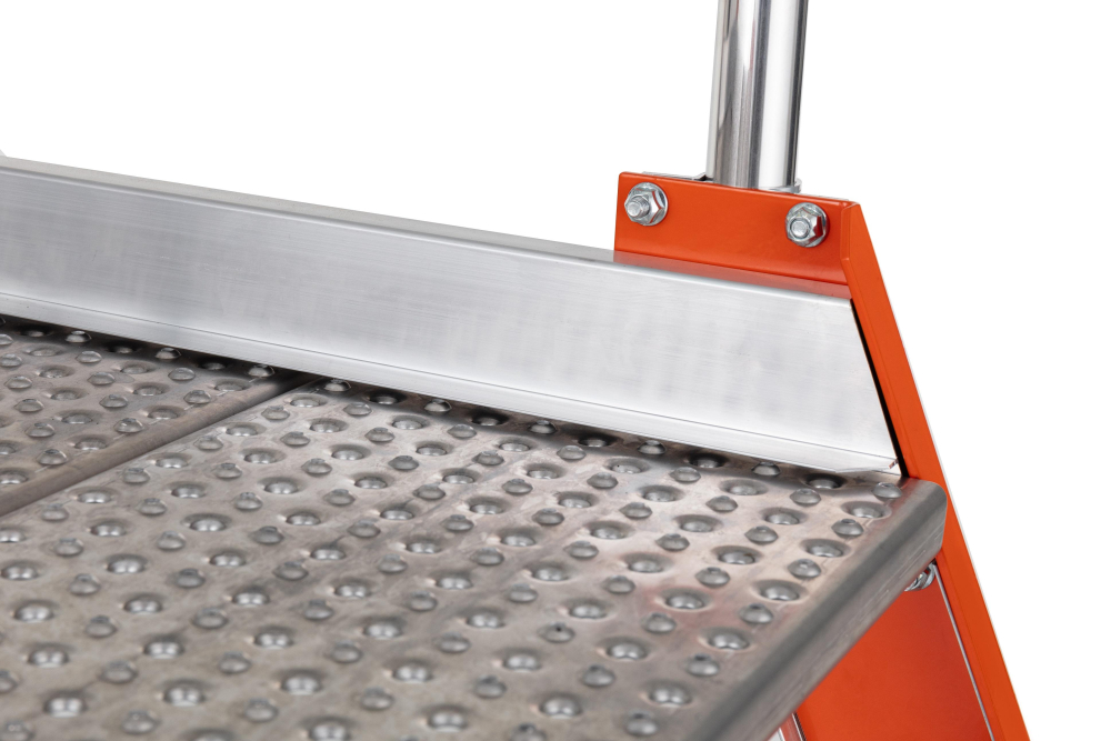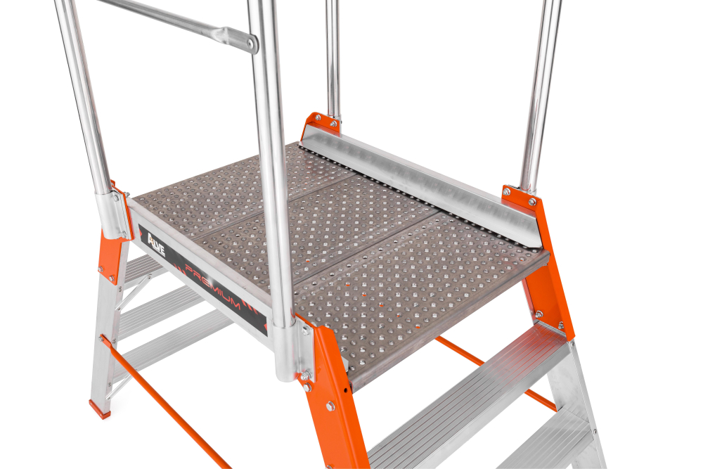 Profesionálny obojstranný hliníkový mostík PREMIUM počet nášľapov 1x5 so stabilizátorom, rozmery plošinky 560 x 778 mm, max. výška plošinky 1,04 m a šírka mostíka so stabilizátorom 900 mm. Plošina je vyrobená z protišmykového hliníkového profilu graepel, mostík tak zvládne najťažšie prevádzky a poveternostné podmienky. Ako doplnok možno objednať pevné alebo odpružené kolieska. Možnosť použitia na profesionálne účely. Na produkt sa vzťahuje záruka 7 rokov.