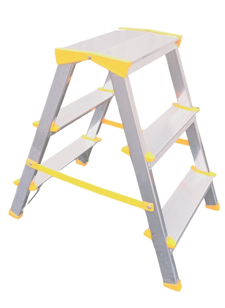 Hliníkové obojstranné schodíky EUROSTYL s integrovaným pántom horných nášľapov, kde nevzniká medzi nimi prázdna medzera, počet nášľapov 2x3 maximálna výška 0,56 m a maximálna šírka schodíka 407 mm. Možnosť použitia na domáce účely.