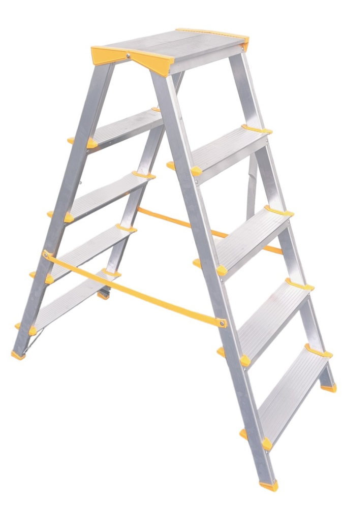 Hliníkové obojstranné schodíky EUROSTYL s integrovaným pántom horných nášľapov, kde nevzniká medzi nimi prázdna medzera, počet nášľapov 2x5 maximálna výška 0,99 m a maximálna šírka schodíka 383 mm. Možnosť použitia na domáce účely.