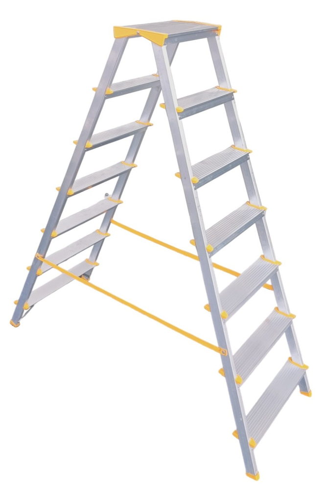Hliníkové obojstranné schodíky EUROSTYL s integrovaným pántom horných nášľapov, kde nevzniká medzi nimi prázdna medzera, počet nášľapov 2x6 maximálna výška 1,41 m a maximálna šírka schodíka 503 mm. Možnosť použitia na domáce účely.