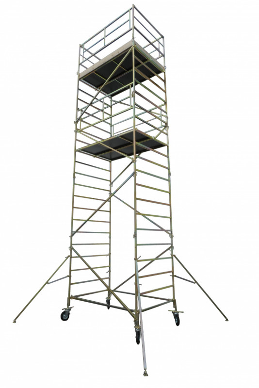 Oceľové pojazdné lešenie so šírkou podlahy 1,36 m a maximálnou výškou umiestnenia podlahy 1,80 m. Na lešení môže pracovať len jedna osoba.