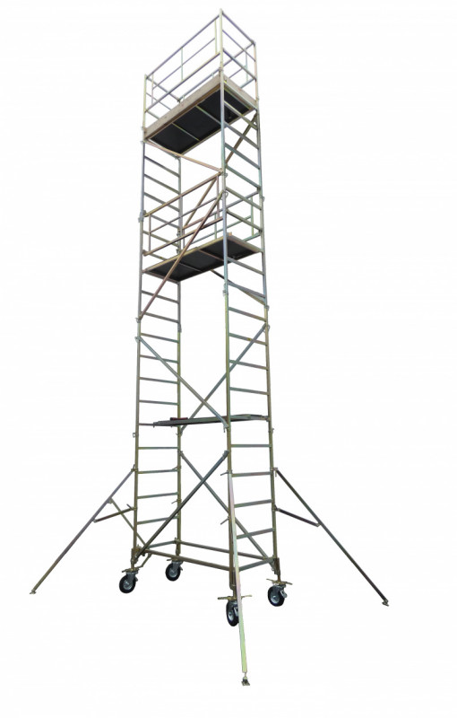 Oceľové pojazdné lešenie so šírkou podlahy 0,76 m a maximálnou výškou umiestnenia podlahy 3,30 m. Na lešení môže pracovať len jedna osoba.