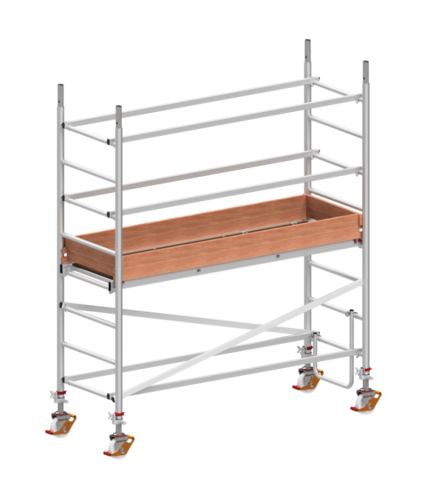 Hliníková pojazdná pracovná plošina EUROFORM so šírkou podlahy 0,61 m a dĺžkou podlahy 2,08 m. Plošinu možno umiestniť do maximálnej výšky 1,25 m.Konštrukcia pojazdného lešenia je na princípe stavebnicového prevedenia. Jednoduché zostavenie bez náradia je umožnené systémom nasúvacích spojov, rýchlospojok, uhlopriečnych a pozdĺžnych zavetrovacích tyčí. Od pracovnej výšky 7,27 m je lešenie vybavené 4 stabilizačnými tyčami, ktoré sú upevnené pomocou kovania. Toto umožňuje prispôsobenie sa terénu. Pri použití blízko pri stene stačia 2 úchytné kovania. Stabilné pojazdné kolieska - 150 mm sú s dvojitou brzdou. V zabrzdenom stave smerujú dovnútra lešenia, čím sa zvyšuje celková stabilita. Nosnosť plošiny je 200 kg.