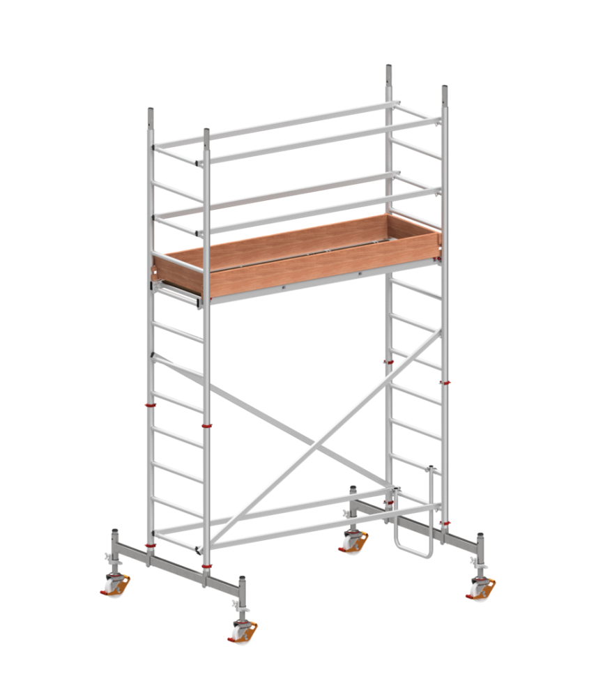 Hliníková pojazdná pracovná plošina EUROFORM so šírkou podlahy 0,61 m a dĺžkou podlahy 2,08 m. Plošinu možno umiestniť do maximálnej výšky 2,25 m.Konštrukcia pojazdného lešenia je na princípe stavebnicového prevedenia. Jednoduché zostavenie bez náradia je umožnené systémom nasúvacích spojov, rýchlospojok, uhlopriečnych a pozdĺžnych zavetrovacích tyčí. Od pracovnej výšky 7,27 m je lešenie vybavené 4 stabilizačnými tyčami, ktoré sú upevnené pomocou kovania. Toto umožňuje prispôsobenie sa terénu. Pri použití blízko pri stene stačia 2 úchytné kovania. Stabilné pojazdné kolieska - 150 mm sú s dvojitou brzdou. V zabrzdenom stave smerujú dovnútra lešenia, čím sa zvyšuje celková stabilita. Nosnosť plošiny je 200 kg.