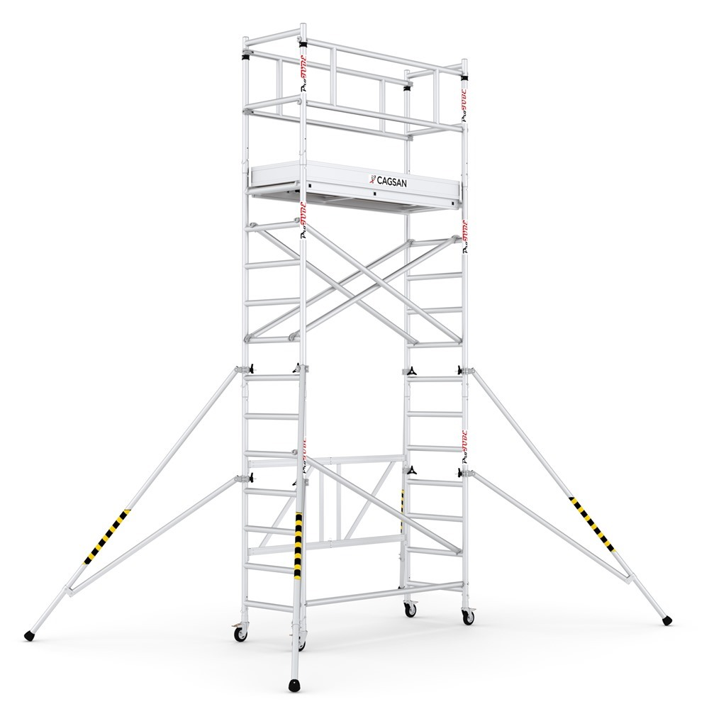 Profesionálne hliníkové lešenie zložené z viacerých modulov, ktoré umožňujú nastavenie lešenia do pracovnej výšky max. 5,6 m. Pro Tube F séria je skladací hliníkový systém lešenia, ktorý poskytuje praktické využitie, možno ho zložiť v jednom kroku a má konštrukciu, ktorá zaberá málo miesta. Jednoduché a rýchle zaistenie stabilizačných vzpier. Lešenie môže stáť a aj sa pohybovať na svojich kolesách bez potreby pripevnenia k akémukoľvek povrchu. Jednoduchý a rýchly zaisťovací systém. Hmotnosť lešenia: 99 kg.