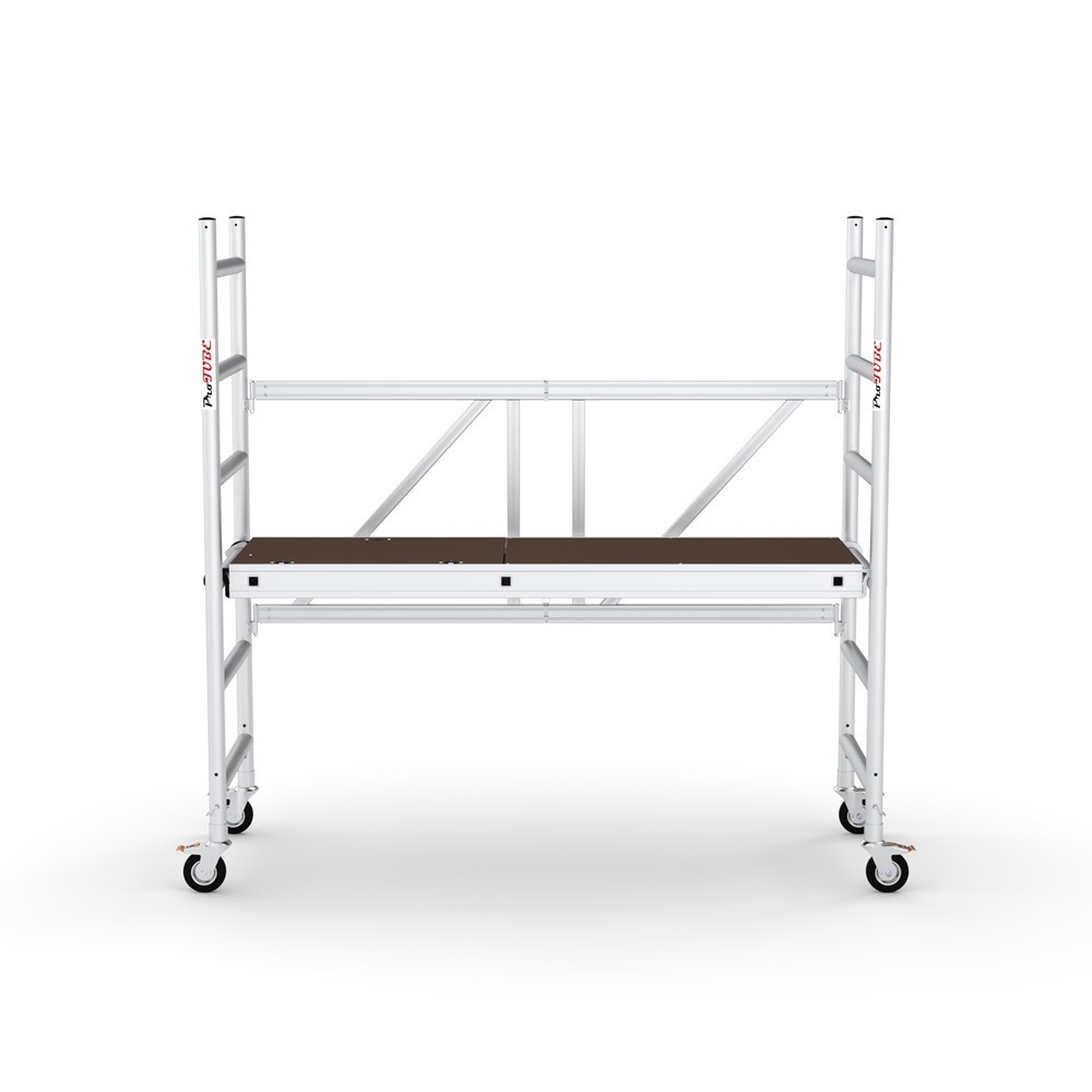Profesionálne hliníkové lešenie ktoré umožňuje nastavenie lešenia do pracovnej výšky max. 2,9 m. Pro Tube F séria je skladací hliníkový systém lešenia, ktorý poskytuje praktické využitie, možno ho zložiť v jednom kroku a má konštrukciu, ktorá zaberá málo miesta. Jednoduché a rýchle zaistenie stabilizačných vzpier. Lešenie môže stáť a aj sa pohybovať na svojich kolesách bez potreby pripevnenia k akémukoľvek povrchu. Hmotnosť lešenia: 37 kg.
