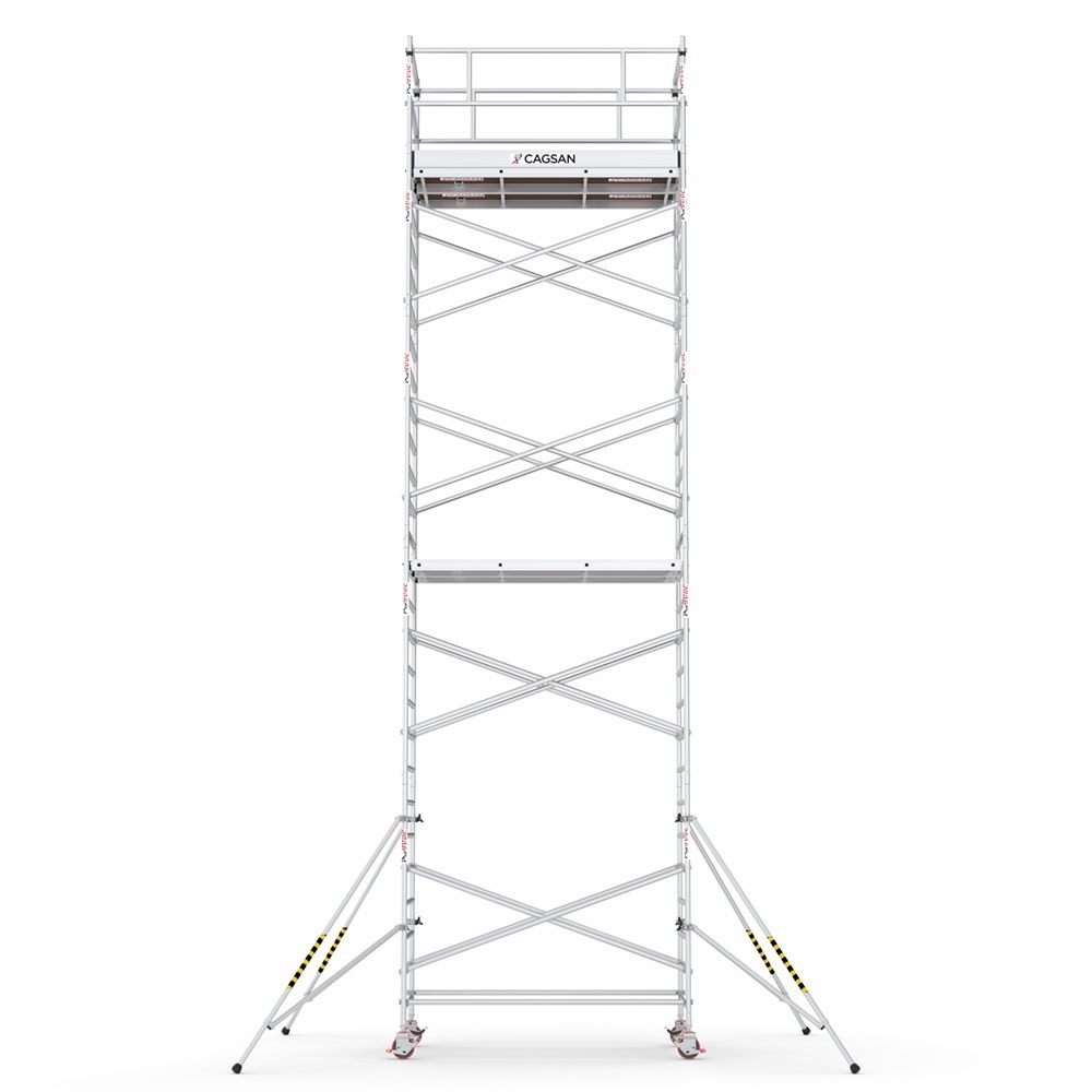 Profesionálne hliníkové lešenie zložené z viacerých modulov, ktoré umožňujú jeho nastavenie do pracovnej výšky max 10 m. Jednoduchý a rýchly zaisťovací systém. Jednoduché a rýchle zaistenie stabilizačných vzpier. Kolieska s aretáciou výškovo nastaviteľné až do 20 cm. Hmotnosť lešenia: 261 kg.