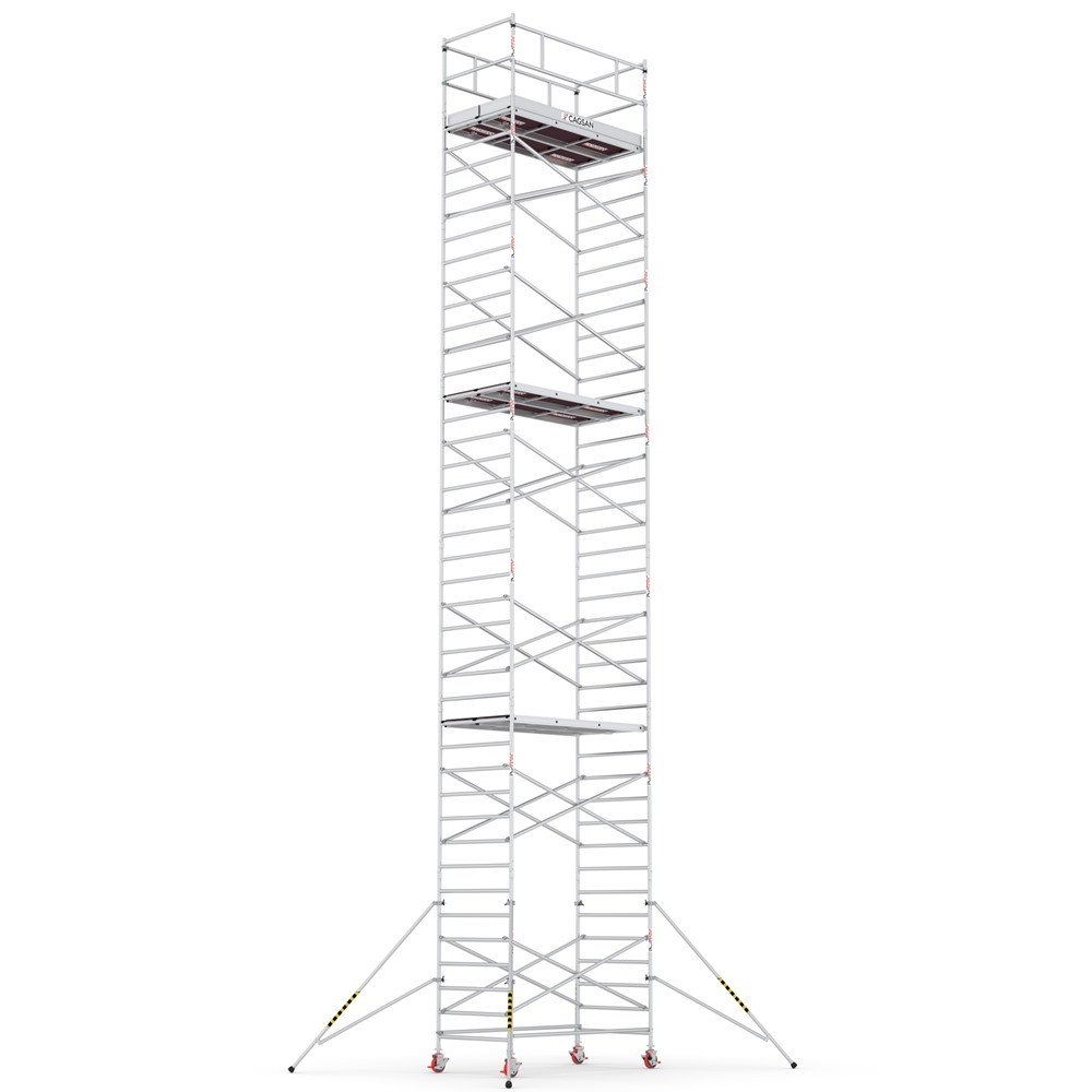 Profesionálne hliníkové lešenie zložené z viacerých modulov, ktoré umožňujú jeho nastavenie do pracovnej výšky max 14,2 m. Jednoduchý a rýchly zaisťovací systém. Jednoduché a rýchle zaistenie stabilizačných vzpier. Kolieska s aretáciou výškovo nastaviteľné až do 20 cm. Hmotnosť lešenia: 359 kg.