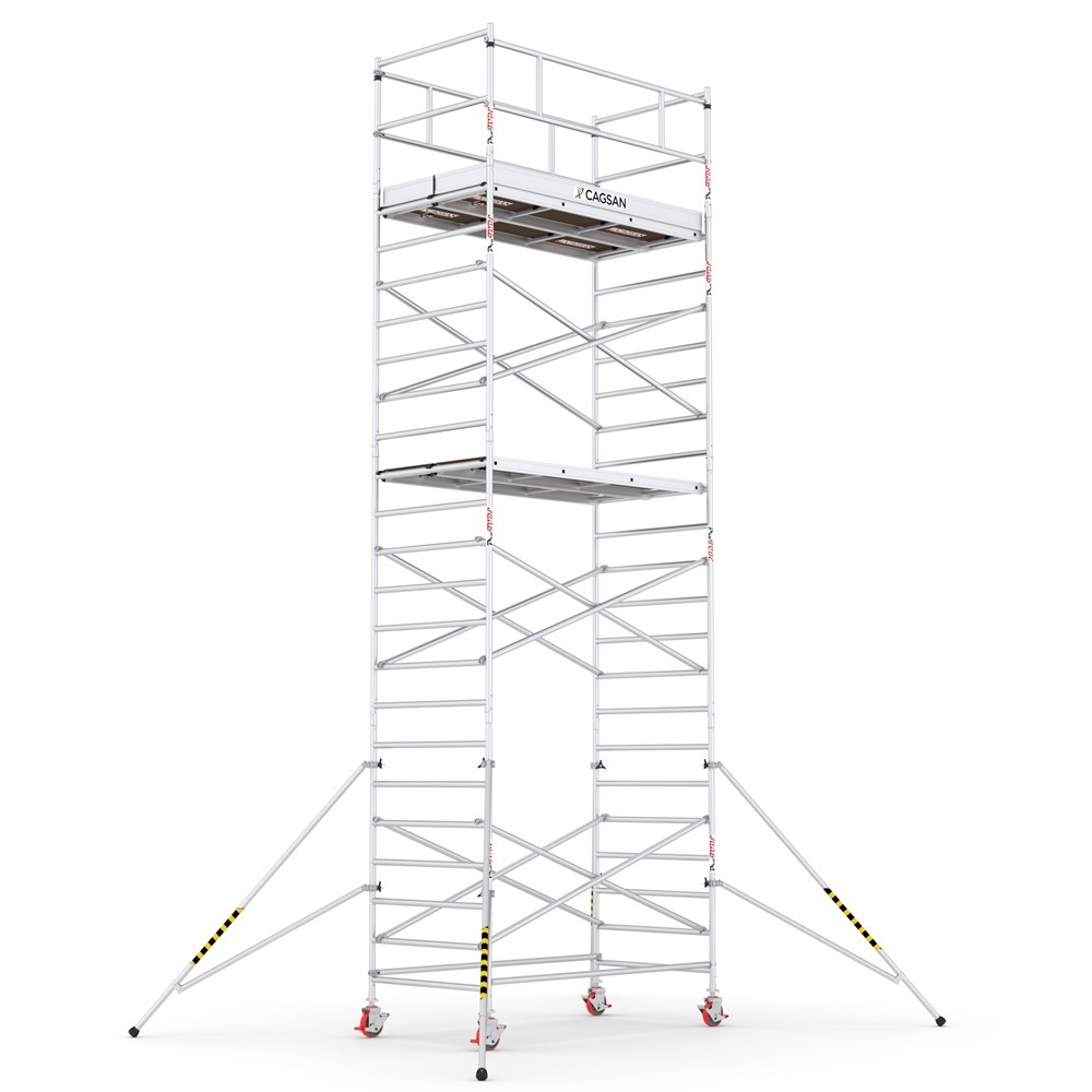 Profesionálne hliníkové lešenie zložené z viacerých modulov, ktoré umožňujú jeho nastavenie do pracovnej výšky max 8,5 m. Jednoduchý a rýchly zaisťovací systém. Jednoduché a rýchle zaistenie stabilizačných vzpier. Kolieska s aretáciou výškovo nastaviteľné až do 20 cm. Hmotnosť lešenia: 238 kg.