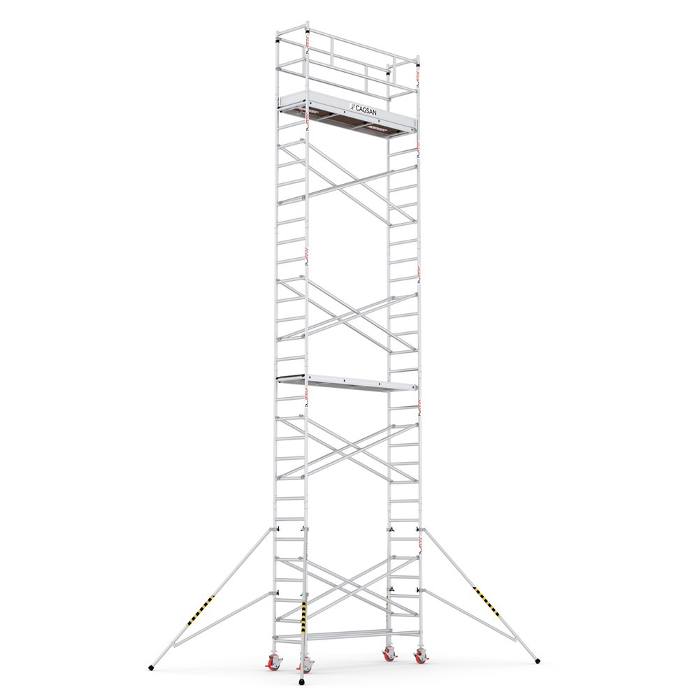 Profesionálne hliníkové lešenie zložené z viacerých modulov, ktoré umožňujú nastavenie lešenia do pracovnej výšky max. 10,6 m. Jednoduchý a rýchly zaisťovací systém. Jednoduché a rýchle zaistenie stabilizačných vzpier. Kolieska s aretáciou výškovo nastaviteľné až do 20 cm. Hmotnosť lešenia: 198 kg.