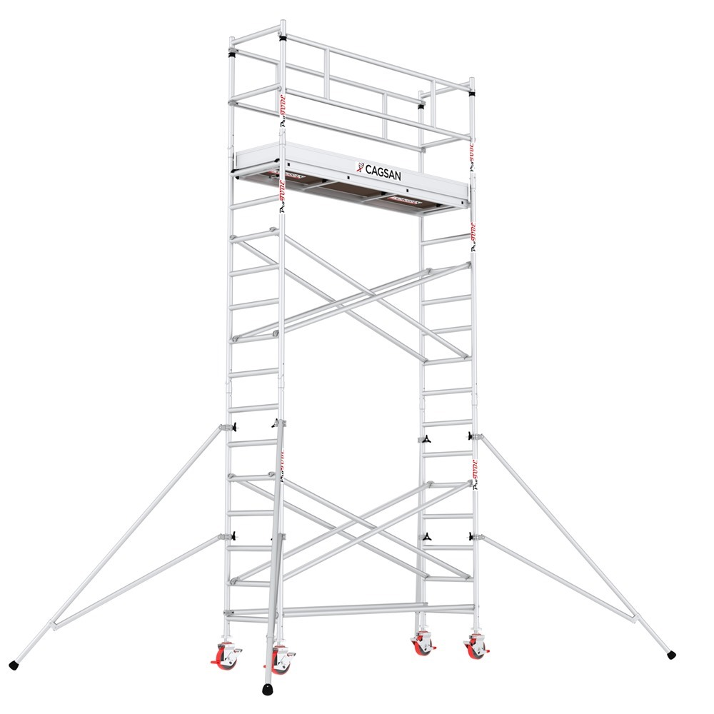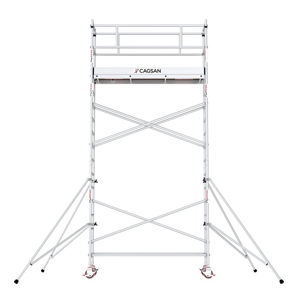 Profesionálne hliníkové lešenie zložené z viacerých modulov, ktoré umožňujú nastavenie lešenia do pracovnej výšky max. 6,4 m. Jednoduchý a rýchly zaisťovací systém. Jednoduché a rýchle zaistenie stabilizačných vzpier. Kolieska s aretáciou výškovo nastaviteľné až do 20 cm. Hmotnosť lešenia: 133 kg.