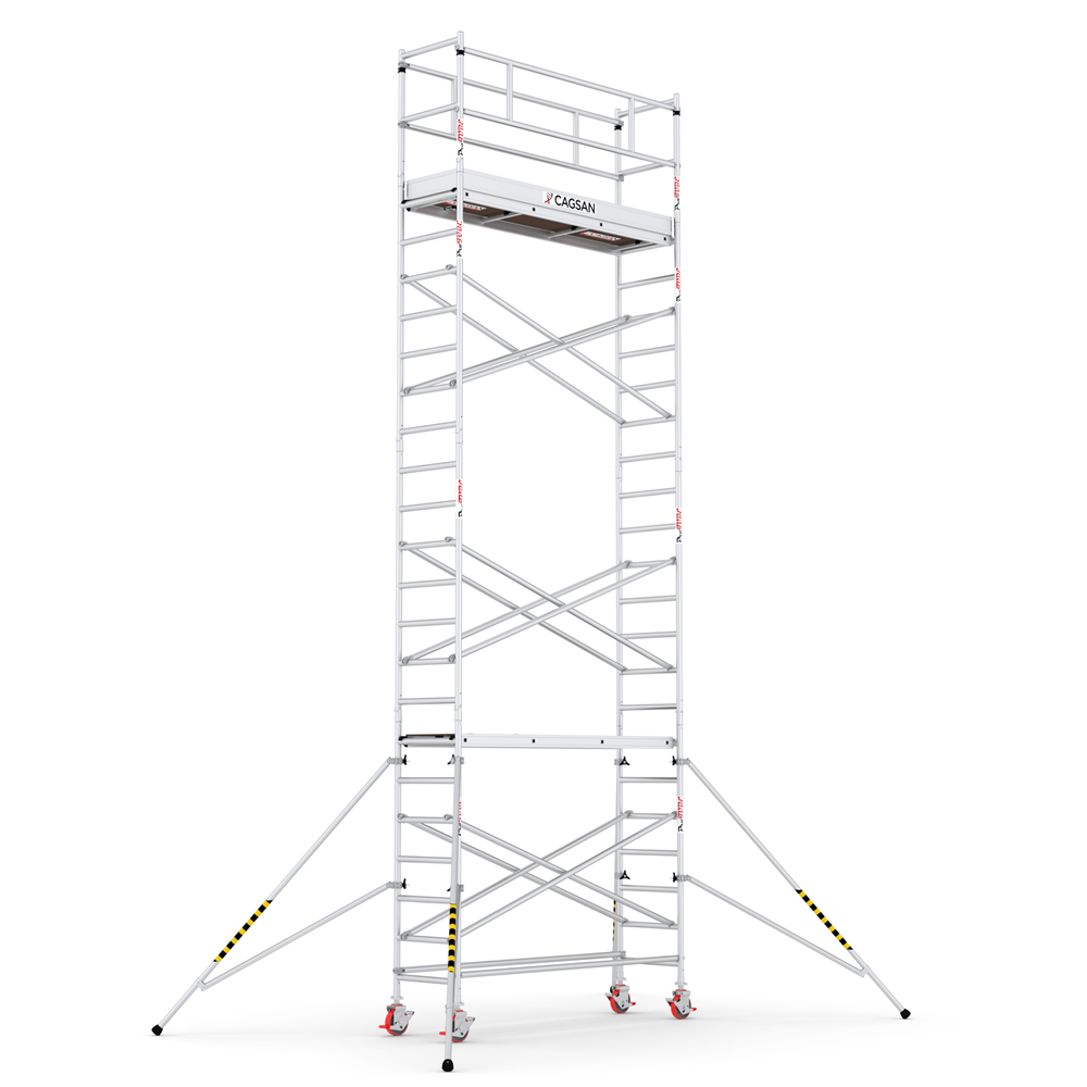 Profesionálne hliníkové lešenie zložené z viacerých modulov, ktoré umožňujú nastavenie lešenia do pracovnej výšky max. 8,5 m. Jednoduchý a rýchly zaisťovací systém. Jednoduché a rýchle zaistenie stabilizačných vzpier. Kolieska s aretáciou výškovo nastaviteľné až do 20 cm. Hmotnosť lešenia: 176 kg.