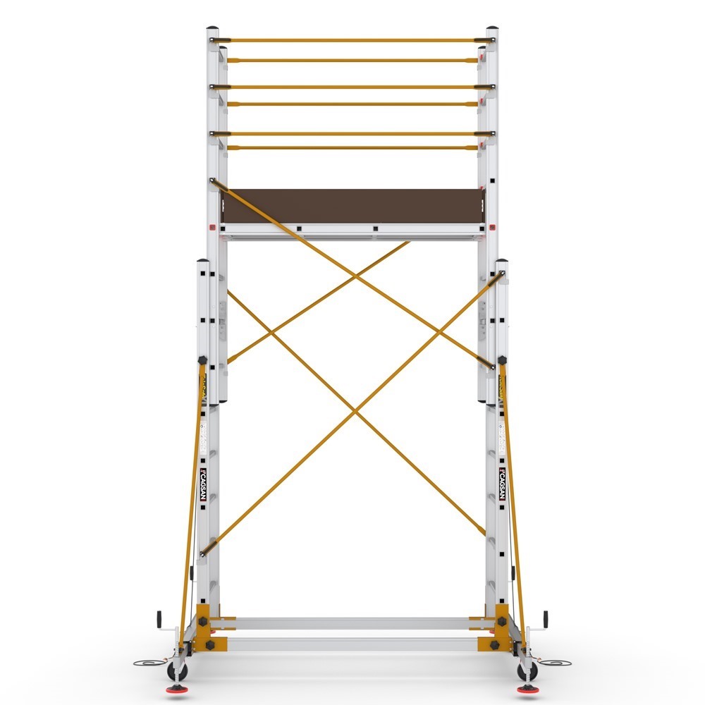 Profesionálne, ľahko prestaviteľné dvojdielne teleskopické hliníkové lešenie ovládané lanami, ktoré umožňujú nastavenie lešenia do pracovnej výšky do 4,75 m. Na obsluhu lešenia stačia 2 osoby. TeleSafe ponúka flexibilitu použitia vďaka špeciálnemu kĺbovému systému a nastaviteľnej dĺžke. Pevná hliníková konštrukcia a oceľové podpery tvoria bezpečnú a odolnú konštrukciu.Pre rýchlu inštaláciu lešenia sa používa systém upínania Q-Lock. Výšku plošiny a lešenia je možné jednoducho nastaviť vďaka lanovému a kladkovému systému. Kryty plošiny a zábradlia sa otvárajú z vnútra, čím vytvárajú bezpečné pracovné prostredie. Má praktickú a prenosnú konštrukciu pre mobylné použitie.Uzamykateľné kolieska a oceľové podpery minimalizujú možné otrasy. Video ukážku lešenia TeleSafe XLN nájdete na tomto odkaze: https://www.youtube.com/watch?v=csk4mvdAOLg