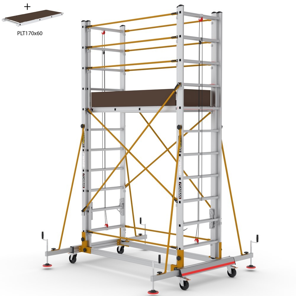 Profesionálne, ľahko prestaviteľné dvojdielne teleskopické hliníkové lešenie ovládané lanami, ktoré umožňujú nastavenie lešenia do pracovnej výšky do 6,42 m. Na obsluhu lešenia stačia 2 osoby. TeleSafe ponúka flexibilitu použitia vďaka špeciálnemu kĺbovému systému a nastaviteľnej dĺžke. Pevná hliníková konštrukcia a oceľové podpery tvoria bezpečnú a odolnú konštrukciu.Pre rýchlu inštaláciu lešenia sa používa systém upínania Q-Lock. Výšku plošiny a lešenia je možné jednoducho nastaviť vďaka lanovému a kladkovému systému. Kryty plošiny a zábradlia sa otvárajú z vnútra, čím vytvárajú bezpečné pracovné prostredie. Má praktickú a prenosnú konštrukciu pre mobylné použitie.Uzamykateľné kolieska a oceľové podpery minimalizujú možné otrasy. Video ukážku lešenia TeleSafe XLN nájdete na tomto odkaze: https://www.youtube.com/watch?v=csk4mvdAOLg