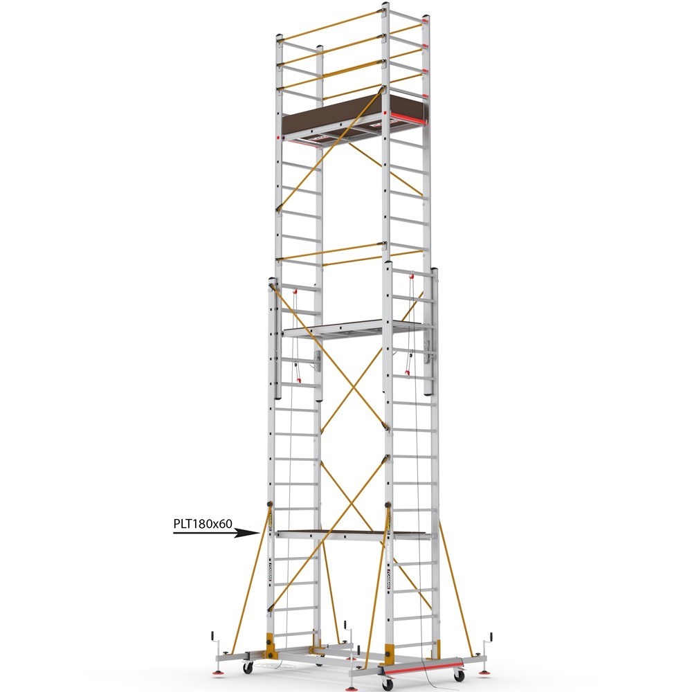 Profesionálne, ľahko prestaviteľné dvojdielne teleskopické hliníkové lešenie ovládané lanami, ktoré umožňujú nastavenie lešenia do pracovnej výšky do 8,05 m. Na obsluhu lešenia stačia 2 osoby. TeleSafe ponúka flexibilitu použitia vďaka špeciálnemu kĺbovému systému a nastaviteľnej dĺžke. Pevná hliníková konštrukcia a oceľové podpery tvoria bezpečnú a odolnú konštrukciu.Pre rýchlu inštaláciu lešenia sa používa systém upínania Q-Lock. Výšku plošiny a lešenia je možné jednoducho nastaviť vďaka lanovému a kladkovému systému. Kryty plošiny a zábradlia sa otvárajú z vnútra, čím vytvárajú bezpečné pracovné prostredie. Má praktickú a prenosnú konštrukciu pre mobylné použitie.Uzamykateľné kolieska a oceľové podpery minimalizujú možné otrasy. Video ukážku lešenia TeleSafe XLN nájdete na tomto odkaze: https://www.youtube.com/watch?v=csk4mvdAOLg