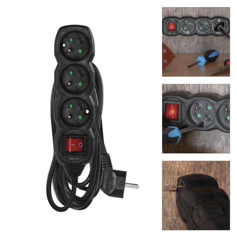 Predlžovací prívod 5 m na 230 V~ slúži na predĺženie elektrickej energie tam, kam pevná zásuvka nedosiahne.Pri montáži na stenu je nutné použiť šróbik zo zápustnou hlavou PZ max. priemer 2,5–3 mm, dĺžka 30–40 mm. V prípade použitia iného priemeru, hrozí poškodenie plastovej časti otvoru. Pokiaľ dôjde k poškodeniu plastovej časti otvoru, predlžovací prívod nepoužívajte.