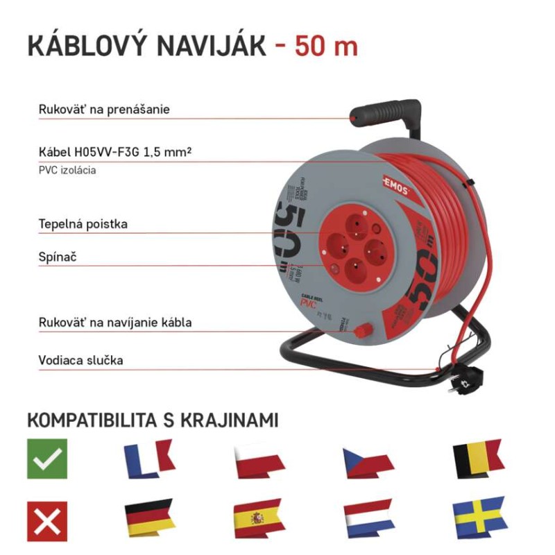 Kvalitný naviják predlžovacieho prívodu. Je ideálny pre predĺženie napájacej siete 230 V~. jeho výhodou je pohodlná manipulácia vďaka bubnu.