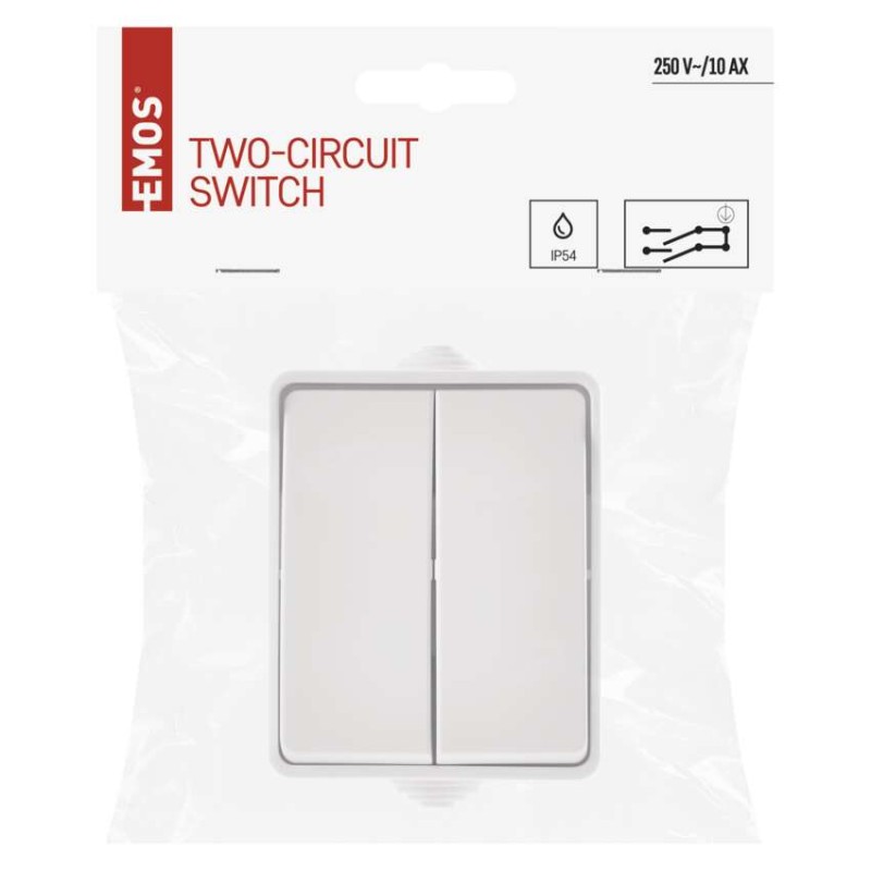Prepínač nástenný č. 5 IP54, 2 tlačítka