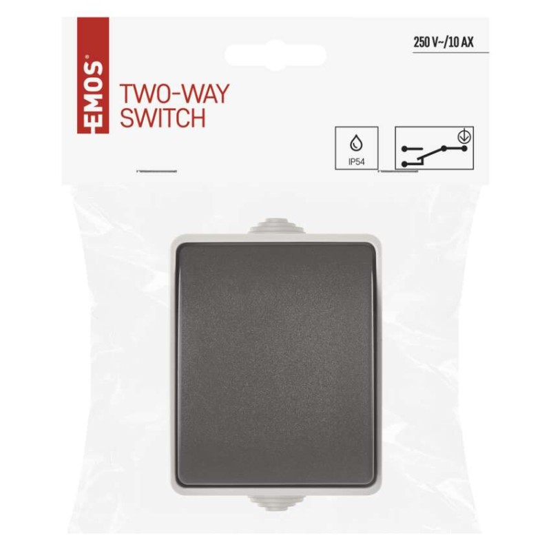 Kvalitný prepínač schodiskový vodeodolný.
