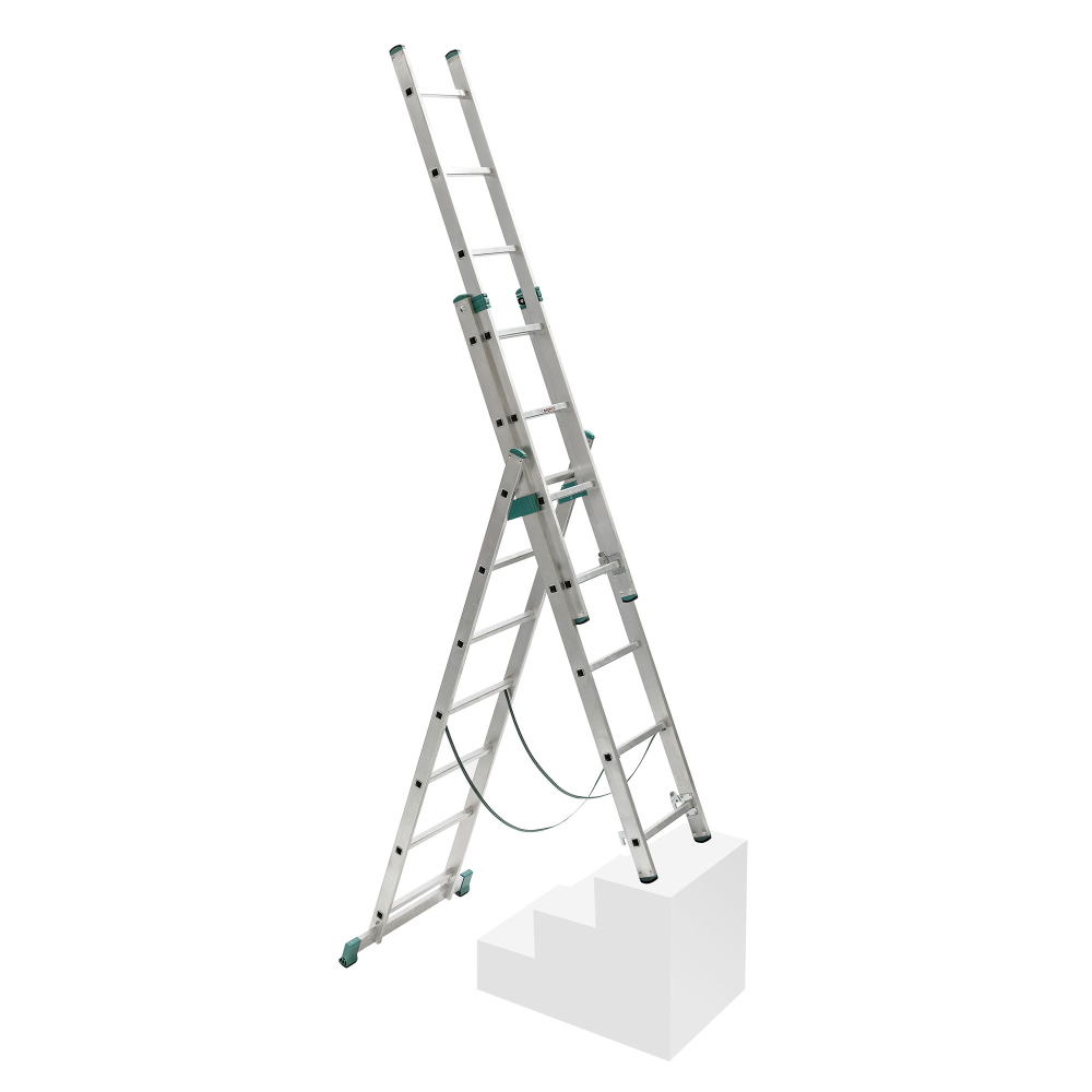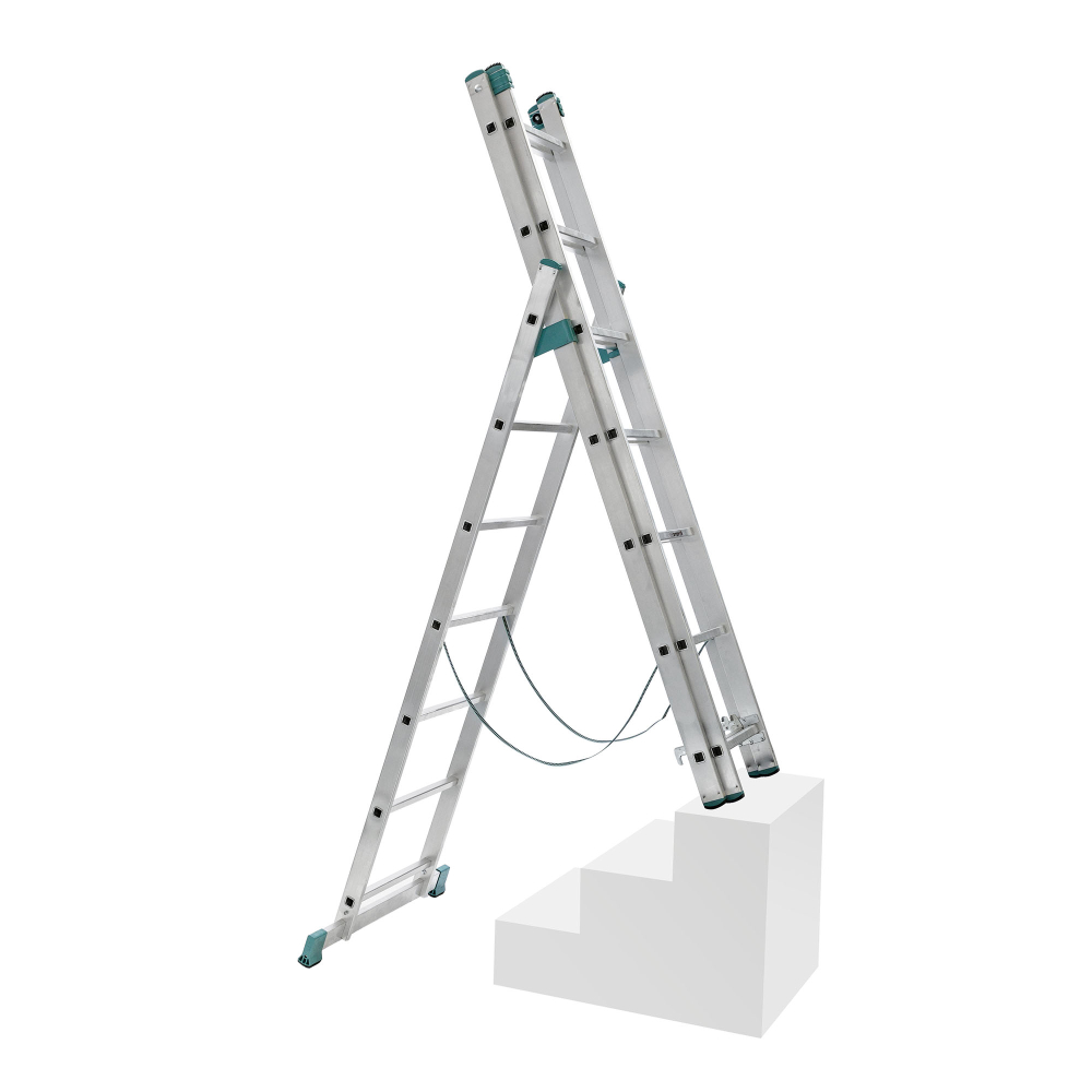 Trojdielny hliníkový univerzálny rebrík EUROSTYL, počet priečok 3 x 7, max. výsuvná dĺžka 3,99 m a šírka 454 mm. S rebríkom sa dá pracovať aj na schodisku. Možnosť oddeliť diely. Možnosť použitia na profesionálne účely. Na produkt sa vzťahuje záruka 5 rokov.