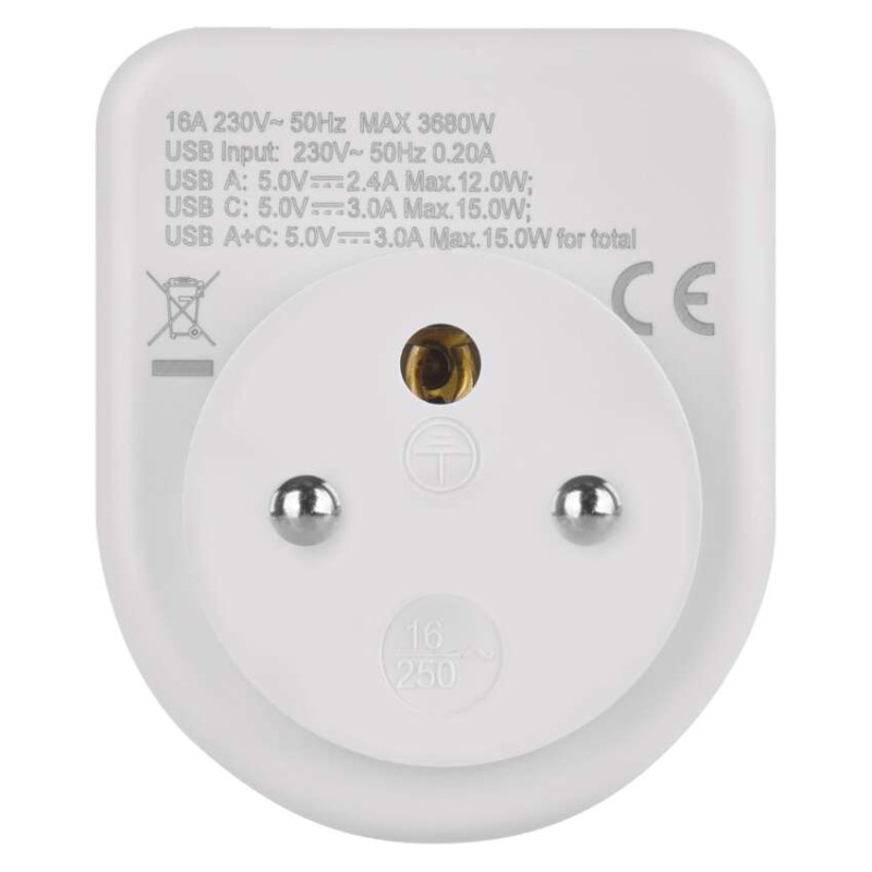 produkt | rozbočovacia zásuvka 1× + 1× USB-A + 1× USB-C 5.0 V, 3.0 A, 15 W max. |