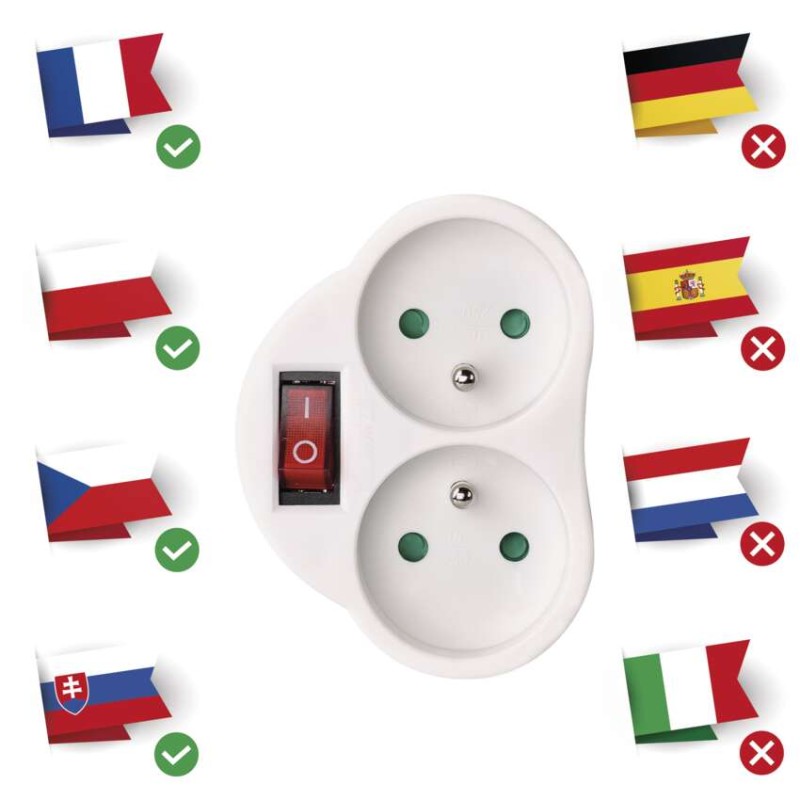 produkt | rozbočovacia zásuvka 2× s vypínačom |