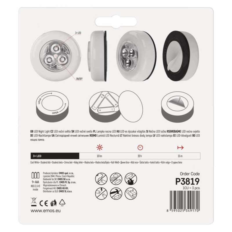 Praktické LED svietidlo s 3 diódami. Pripevníte ho tam, kde potrebujete, vďaka lepiacej časti na zadnej strane.