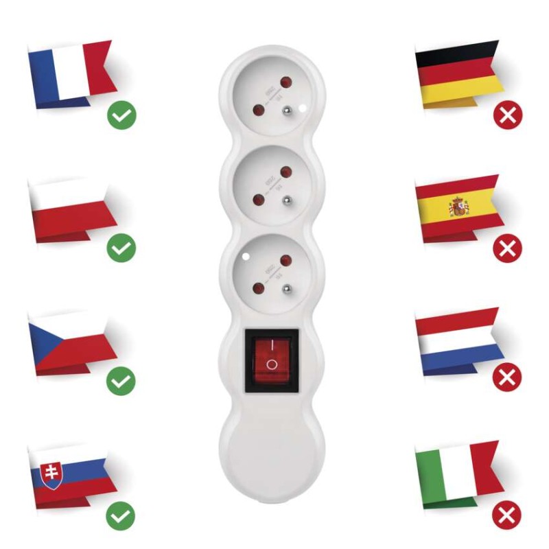 počet zásuviek | 3× 2P + PE |
